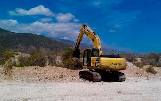 excavadora removiendo tierra de un páramo cerca del paso fronterizo haitiano de