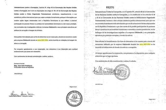 Revelan: Procuraduría RD pidió a Brasil datos Odebrecht de 2001 a 2004 y en traducción dice que lo hizo de 2001 a 2014