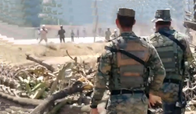 Tercera Brigada apostada en el lugar, luego de cruzar la frontera protestando