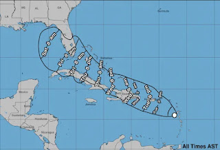 de la Isla Saona y a unos 480 km al sureste de Ponce, Puerto Rico, sus vientos