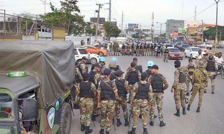 Policía Nacional y militares de la Fuerza de Tarea Ciudad Tranquila, para custodiar
